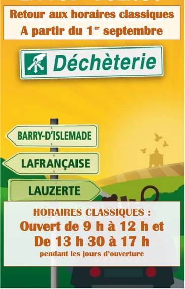 A compter de lundi 1er septembre, les déchèteries du SIEEOM retrouveront leurs horaires classiques : de 9 h à 12 h et de 13h30 à 17h